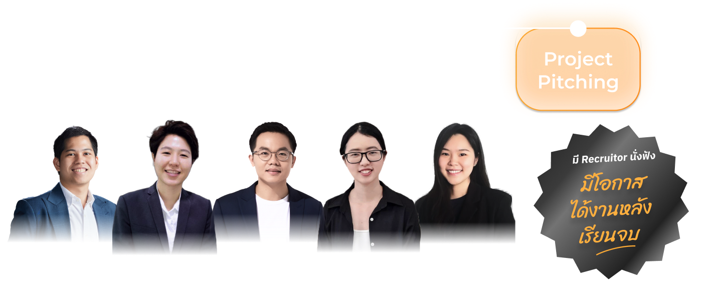 ทำโปรเจกต์์จาก Data จริง พร้อมเพื่อนในทีม ตั้งแต่ตั้งโจทย์ จนถึง Pitching จริง พร้อมรับ Coaching กับผู้เชี่ยวชาญในวงการ*